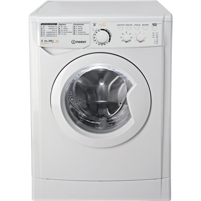 INDESIT EWDC 6145 W FR – Lave linge séchant frontal – Lav. 6k / séch. 5kg – 1400 tr / min – B – Blanc